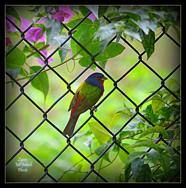 The buntings all seem to like hanging out on the fence under the bougainvillea. They were first attracted to the yard by the birdbath. Then I put out white millet which is their favorite food and they decided to stay for the winter. I'm sure happy they did!